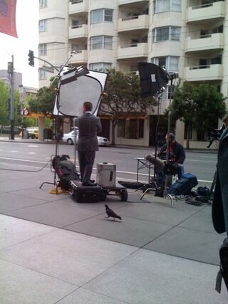 Another Apple conference means another chance for Jim Goldman to deliver Apple talking points into CNBC cameras. The network's famously petit Silicon Valley bureau chief was careful to bring his booster box. A bystander snapped us some pictures.