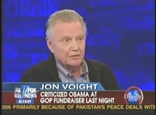 On Bill O'Reilly's show Voight insinuated that Kim Jong Il is puffing out his chest because he knows Obama's a pansy-ass, said that he tried to warn everyone about Obama's shady past but nobody would listen, and that the President is a secret marxist. Basically all the same stuff you'd hear Rush Limbaugh state on his show each day, which O'Reilly actually pointed out, though Voight denied listening to Limbaugh's show.