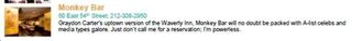 Ha, Vanity Fair just put out their NYC summer guide, but hey—don't ask them for a reservation at Monkey Bar! Owned by Vanity Fair's Graydon Carter! Because they can't get you one! Eh? Their guide also features errors: