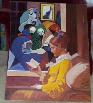 As we mentioned, Von Brunn was a painter. Just like Hitler! But the one example of his work that we have (which is no longer for sale at AskArt.com) is, uh, interesting. It is a amalgam of Fragonard's The Reader and Picasso's Woman With a Book. A clever recontexulaization of classics by Renaissance and Modernist masters! By a 89-year-old White Supremacist who just killed a man at the Holocaust Museum!