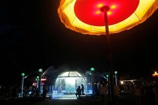 Bonnaroo music festival patrons seek relief from the heat in a fountain at the four-day arts and music festival in Manchester, Tennessee, which kicked off yesterday. [AP Photo/Dave Martin]