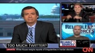 Meanwhile, Howard Kurtz had Rick Sanchez and sportswriter Gregg Doyel on Reliable Sources for an utterly useless but incredibly ironic debate over Twitter's relevance. To his credit Sanchez, a mildly obsessive Twitterer, sort of gets it, mentioning that he interviewed someone in Tehran on his show that he'd met on Twitter, but no one on the show seemed to grasp the fact that the Twitter was in midst of handing CNN its proverbial ass as a news source before, during and after the airing of Reliable Sources.