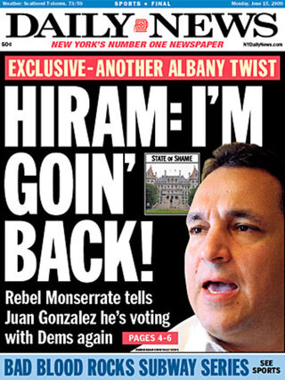 The Daily News broke the news on the front page today, which is funny, because they keep reporting on that assault thing and calling him names like "traitor." But apparently Monserrate is losing his mind, or something, because of all the stress from his upcoming trial. Being a mercurial violent asshole narcissist is almost as exhausting as "legislating" or whatever he is supposed to do!