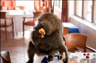 Traveling abroad is dangerous for the media. Take TechCrunch's Sarah Lacy for instance. She's in Rwanda, writing a book or something, when a baboon attacked her breakfast. Thankfully, she works for Michael Arrington, so she has experience handling deranged primates.