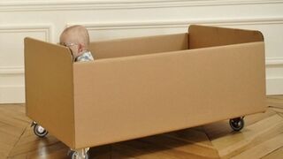 Here we have the Album de Famiglia design collection customizable cardboard cot (brown), a.k.a. a cardboard box. No, really: