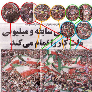 A picture that shows that some Photoshopping was used to make the crowd at a pro-Ahmedinejad rally look bigger is racing around the Internet right now. We have no idea where it's from (anyone read Farsi?) but everyone's screaming propaganda!