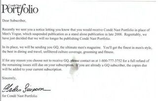 This is what happens when magazines die too fast. Conde Nast folded Men's Vogue last October. But don't worry, Men's Vogue subscribers! We're hooking you up with a subscription to Portfolio. Wait.