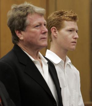 - Farrah Fawcett's son with Ryan O'Neal, Redmond O'Neal, will be able to attend his mother's funeral. He's been serving time since April 5th for a violation of his previous probation by possessing heroin. He'll be allowed to be in a suit, but will have to remain in hand and leg cuffs. He was in prison when he found out about his mother's death; they had previously let him out to visit her on May 15th. Can we have a collective "Really?" please?