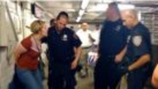 Chrissie's version: Her pug got sick on the subway, so she took it out of its bag, then a cop ran up and grabbed her and harassed her and arrested her and said anti-woman things!
