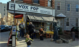 Vox Pop, described as "a coffee-house, a bookstore and a publishing company" on its website, is a popular hangout for Brooklyn lefties who love free wi-fi, poetry readings and open-mic nights (and what Brooklyn lefty doesn't?) whose financial troubles were detailed in the New York Times back in March. Vox Pop's owner, Debi Ryan, said that the statue was stolen on June 21 and that she, like a typical pansy-ass liberal, is "scared" after seeing the hilariously amateurish video showing the blindfolded statue receiving a beheading as "We Don't Want Your Freedom" and "Death to America" flash across the screen repeatedly in Atari-esque font.