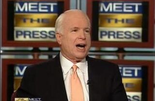 McCain was a guest on Meet the Press today and was quizzed on the whole Palin resignation fiasco by David Gregory. He smiled and oh-goshed Grandfatherly and acted like all of this was just dandy and that he has no regrets about plucking little ole simple Sarah from the wilds of the Klondyke to run the country in the event that he, a 72 year-old man with a history of cancer, had to step down for, like, dying or whatever. No, McCain can find no fault with any of what she did and he doesn't regret picking her and she's still a hope for the future of the party blah, blah, blah.
