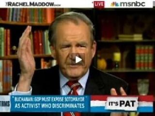 Oh Pat. Rachel Maddow had crazy ole "Uncle Pat" on her show tonight to discuss the Sonia Sotomayor Supreme Court nomination and Buchanan went over the dark side with a "white people built this country and deserve more" rant.