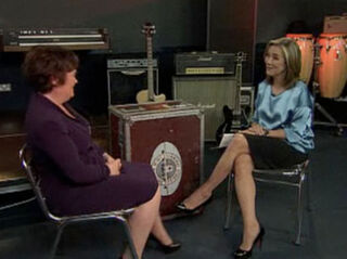 "Just a slight one," she responds with usual British irony. Because, really, in comparison to the old maid who formerly only warbled to her kitty cats, you know the New Improved Miss Boyle's a-feeling like Heidi Klum these days. When asked if she's having a good time, Suze grimaces, and forces out "I'm having a wonderful time" and "I don't want it to end" as if ramming a nail in her hand.