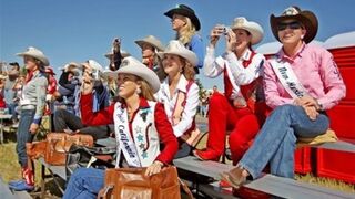 [Rodeo riders enjoy a jet airshow in Wyoming. We just really really like this photo for some reason. It's beautiful and funny and sad. All in one! And it's via AP]