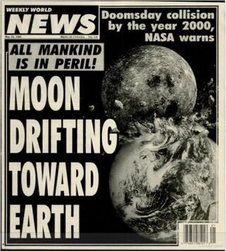 Google Books has more than 20 years worth of back issues of WWN (there's an official WWN site, too). Their favorite themes include, but are not limited to: Nostradamus, Bigfoot, Aliens, the Loch Ness monster, the fattest, skinniest, tallest, and shortest people in the world, Satan, God, Jesus, Hell, Heaven, babies doing amazing things, and outrageous but true occurrences: How could they let Saddam keep that lottery money?? These are as good a proxy as anything for American life since the Clinton administration: the rise and fall of the religious right, and we all get fat. That's about it.