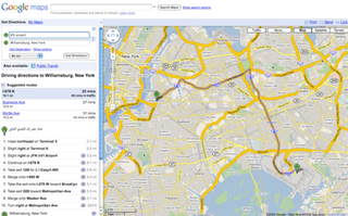 Go to Google Maps and click "get directions." Type "JFK airport" into the A search field and any NY location like "Williamsburg, NY" as the B destination. Click "Get Directions" and "JFK airport" is suddenly Arabic!!!