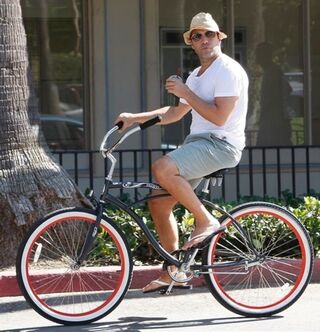 [Jeremy Piven butches it up for his big adventure, pedaling in style to meet his girlfriend yesterday in Malibu. Photo via X17]