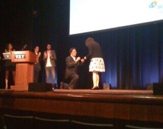 The proposer: Adam Hirsch, COO of geek business hub Mashable. The courted: Sharon Feder, Mashable's Managing Editor. The location: On stage at the Social Good conference at the 92nd St. Y. And the verdict?