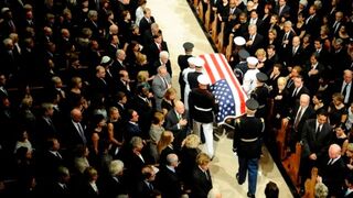 John McCain doesn't seem too upset to be at a funeral. It's his birthday! [Photo by Chip Somodevilla/Getty Images]
