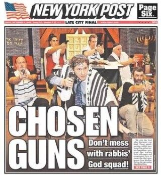 Campy Jewish Self-Defense Squad to the rescue! Of the news cycle! Where does today's instantly classic New York Post cover of NYC's most self-serious gun-totin' rabbis rank in the canon of Pop Culture Jews With Guns?