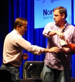 (Top pic: Calacanis, left, and Arrington in happier days, by Frank Gruber.)