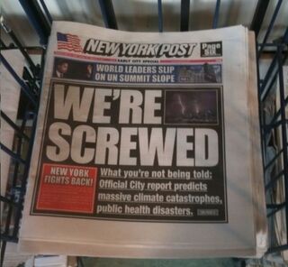 So while the Fake NYT was about ending the Iraq War, the Fake NYP is all about global warming. It's much too earnest to really capture the full comedic potential of the setup, but you have to at least admire the ambition.