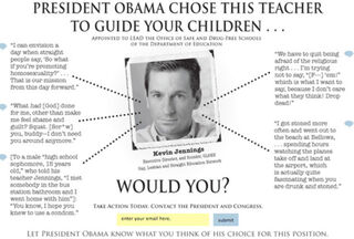 You will soon be hearing a lot about Barack Obama's "Safe Schools Czar." His name is Kevin Jennings, and you will learn that he wants to promote homosexuality, he hates God, and he does drugs.