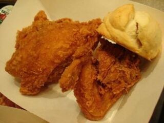 Oh wow, hey everybody, all the fancy people in New York City, gather 'round and look at this: It's fried chicken! Here is a newsworthy new trend, "foodies": Chicken, rolled in flour or batter, and fried. Alert the media!