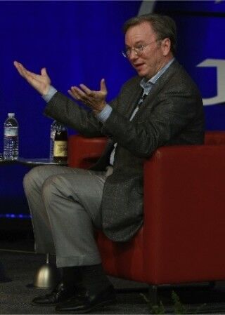 Speaking to reporters today in New York, founder Sergey Brin and CEO Eric Schmidt (pictured) said people shouldn't come to the company to get rich, and shouldn't expect fancy food, Peter Kafka at All Things D reports.
