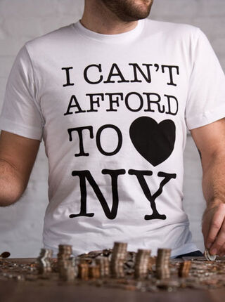 'I love NY' T-Shirts? About $2. New, meme-tastic 'I Can't Afford To Love NY' T-Shirts? $19.99 (including shipping) from some hipster who prints onto American Apparel because apparently the new avoiding cliches is diving headlong into cliches.