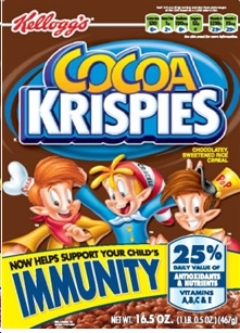 Kindly Kellogg marketers have agreed to take the big huge banner that says "Helps your child's IMMUNITY" off boxes of Cocoa Krispies, but that doesn't mean that Cocoa Krispies is not basically superhealthy vitamins, for your family!