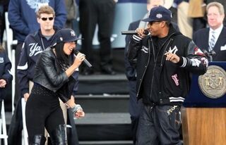 "New York, New York" is built around a handful of memorable phrases ("I want to wake up in a city that never sleeps") that resonate with a universality perfect for a baseball stadium. Ms. Keys supplies that ingredient in "Empire State of Mind," singing somewhat trite slogans ("These streets will make you feel brand new") in a huge, rousing voice. Yet like all Jay-Z songs, "Empire" is, in the end, solely about Jay-Z. And while his personality may fill Yankee Stadium more persuasively than any other pop star, would 50,000 fans ever have the timing, or the memory, to recite "Say what-up to Ty-Ty, still sippin' Mai Tais/Sittin' courtside, Knicks and Nets give me high-five"?