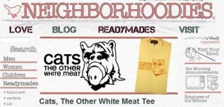 The all-powerful National Pork Board has sicced its attorneys on make-your-own-clever-shirt site Neighborhoodies. The National Pork Board strongly disagrees with Alf's assertion that cats are "The Other White Meat."