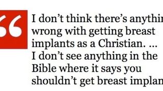 Carrie Prejean —Gabriel Snyder11/12/09 1:46pmFiled to: PullquoteCarrie prejeanBreast Implants106EditPromoteDismissUndismissHideShare to KinjaToggle Conversation toolsGo to permalink explaining how she balances being a beauty queen and a crusader for the Lord, in an interview with Christianity Today.Reply106 repliesLeave a reply