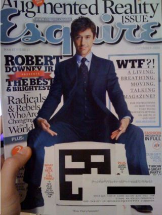 Esquire decided to SAVE MAGAZINES this month by putting another weird little "hold it up to your webcam" hologram augmented-reality gizmo on the cover, but alas: the magical doohickey is obscured by the address label. Curse you, ignoble media irony.