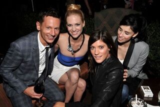 [GQ editor-in-chief Jim Nelson cozies up to January Jones, Jennifer Carpenter, and Sarah Silverman right before the comedian makes an indecent proposal at the GQ 'Men Of The Year' party in Hollywood last night. Image via Getty]
