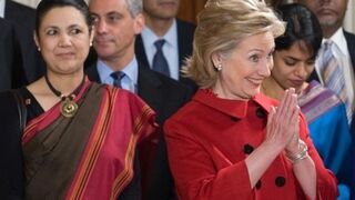 [Secretary of State Hillary Clinton—alongside Indian ambassador to the U.S. Meera Shankar—beams at the arrival of Indian Prime Minister Manmohan Singh at the White House today. Step inside to see Joe Biden's reaction. Image via Getty]