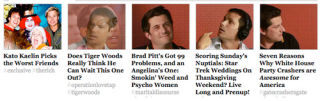 From time-to-time, advertisers like to splash their ads over the space we call the "skybox" for a few seconds. It's a showy, sometimes pretty, way for advertisers to impress their brand into your cortex. But these are, well, confusing. It's unclear what Showalter and Black have to do with eBay, who's apparently bought the front page today. Separately, though, it's bizarre to see their faces over headlines like "Does Tiger Woods Really Think He Can Wait This One Out?" and "Seven Reasons Why White House Party Crashers are Awesome for America." If an advertiser wants to use the "look" of our skybox, they should also take some time to (ahem, use our crack creative services team to) write their own headlines.