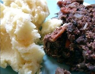 Ah. Yes. Paul Haggis. They suggested we link to their food website, which has a recipe for haggis, "A sheep's heart, liver, and lungs mixed with minced onion, oatmeal, suet, spices, salt, and stock...boiled in the sheep's stomach."