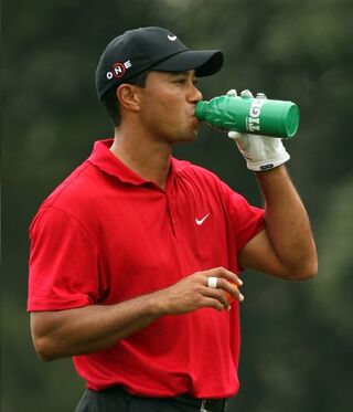 [And yes Gatorade is canceling its weird Tiger drink, but they already decided that a long time ago. What was that all about anyhow? 'Fruit punch' flavor Gatorade was good enough for Gene Sarazen and it's good enough for you, by gum. Pic: Getty]