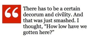 the former President describing his reaction to seeing Rep. Joe Wilson scream out "You Lie!" during Barack Obama's health care speech in September, to Parade magazine via Politico.