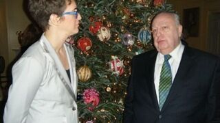 What did Rachel Maddow and Fox News president Roger Ailes' say to each other at tonight's White House holiday party for broadcast journalists? Our guess: [Five minutes of awkward silence.] MADDOW: "Well, I guess I'm going to get a drink?"
