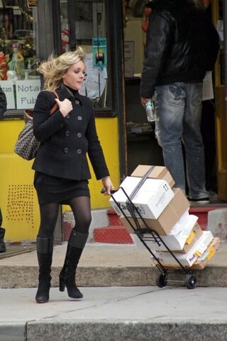 [With the help of a hand truck, 30 Rock's Jane Krakowski robbed a Manhattan store blind yesterday afternoon. Image via Bauer-Griffin]