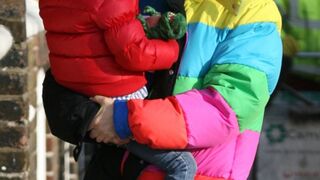 [Don't adjust your set, it appears that Gwen Stefani was wearing a coat fashioned after TV color bars while traipsing around London with her son this weekend. Image via Pacific Coast News]