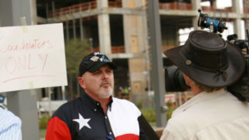 And the guy holding the sign? He is Dale Robertson, who is the self-described "President and Founder of the Tea Party." He owns and operates TeaParty.org. So, yes, this is an actual organizer of the movement, and not just some dude. His sign reads, in full: "Congress = Slaveowner / Taxpayer = Niggar." Maybe he thinks he is allowed to use that word if he spells it wrong?