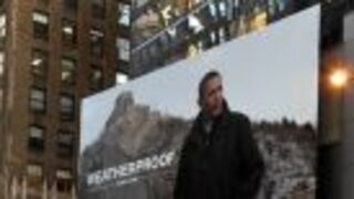 First PETA used Michelle Obama in an unauthorized ad; now, Weatherproof has plastered Barack's face on a billboard just because he wore their coat once. What's next, telling you the Obamas read our blog daily? No, we respect their privacy.