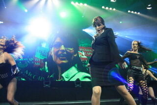 So, if we are to understand Germany's interpretation of post-Obama America from this, we get multi-culti Sesame Street + skanky Republican sideshows + sexy McPresident with a sterling tenor. This is about the way I think of America, too, so looks like Germany is not so far away, after all. May I suggest HOPE's producers focus on a Sarah Palin bio-musical next, a ribald operetta featuring a sultry Levi Johnson boudoir number and narration from a freshly field-dressed moose. [HOPE] [Spiegel]