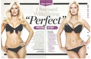 The Speidi fameball may have just spun off its axis and landed in Jocelyn Wildenstein 'Cat Lady' territory. Even with Photoshop intervention, it is hard to believe that these two bodies represent the same 23-year-old female. People says surgery is Heidi's way of dealing with "insecurity" and "Hollywood pressure." Regarding the "Hollywood" angle: If she hadn't become famous, would Heidi be like this? Also: Will the paparazzi even recognize her? And: Sci-fi was wrong about the first half-human half-synthetic beasts being super-intelligent cyborgs. They are already here, and they are half-human half-silicone sex toys.