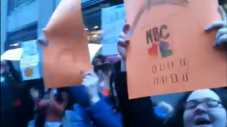 In New York, hundreds braved extremely mild temperatures and, apparently, being unemployed, to attend an afternoon rally outside of Rockefeller Center, where O'Brien hosted "Late Night" in simpler times: