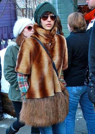 [A creature identified as Jessica Alba hangs out in Park City. You know who else was there? Stephanie Pratt. Why on Earth is Stephanie Pratt at Sundance? Image via INF]